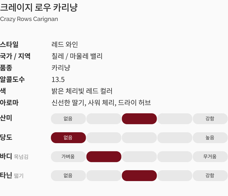 Nose : 신선한 딸기, 사워 체리, 드라이 허브