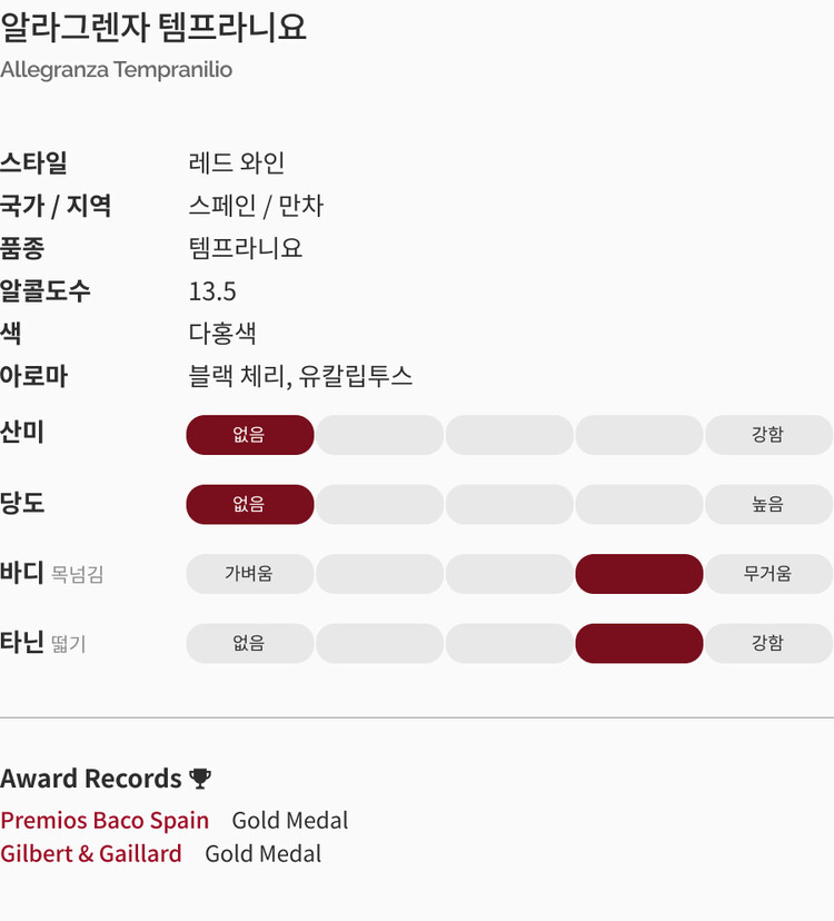 Nose : 블랙 체리, 야생 딸기와 이국적인 향신료, 유칼립투스의 향