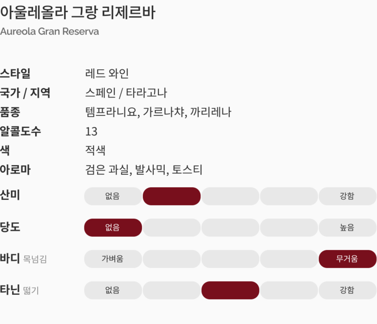 Nose : 잘 숙성된 검은 과실류와 발사믹, 토스티한 노트