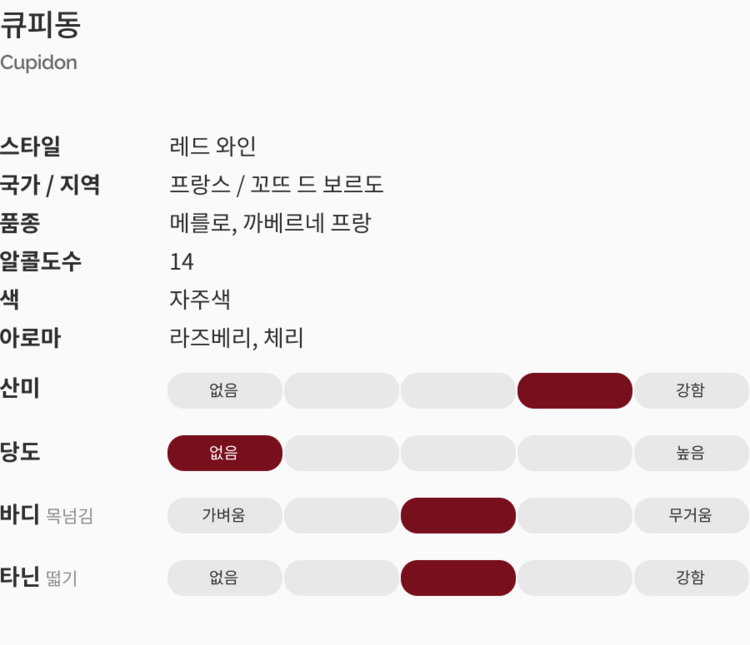 Nose : 라즈베리, 체리 등의 신선한 아로마